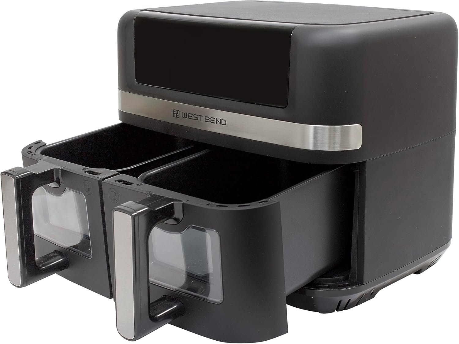 The West Bend Double Up Air Fryer is a revolutionary dual-basket air fryer designed for busy families, meal preppers, multi-taskers, and anyone tired of cooking foods back-to-back in single-basket models. This innovative 10-quart capacity appliance features two completely independent 5-quart baskets that allow you to cook two different foods at different temperatures simultaneously—imagine perfectly crispy fries in one basket while chicken tenders cook at a separate temperature in the other. The game-changing Sync Finish function intelligently adjusts cooking times so both baskets finish at exactly the same moment, ensuring hot, fresh food served together rather than one dish sitting while the other finishes. Each basket includes a clear view window with interior lighting, letting you monitor cooking progress without opening the drawer and losing heat. With 15 one-touch preset functions including Air Fry, Bake, Broil, Chicken, Dehydrate, Fish, Fries, Frozen, Keep Warm, Preheat, Roast, Reheat, plus dedicated Dual Cook and Sync Finish buttons, this air fryer eliminates guesswork for beginners while offering experienced cooks complete manual control with temperatures from 90°F to 400°F. The Diamond Shield™ PFOA/PFOS-free nonstick coating on both baskets ensures food slides out effortlessly and cleanup takes seconds. Perfect for families of 4-8 people, households with diverse dietary needs, entertaining guests, or anyone wanting to cook complete meals faster, this 1600-watt powerhouse with cool-touch handles and 12-month warranty transforms chaotic dinner preparation into synchronized efficiency.