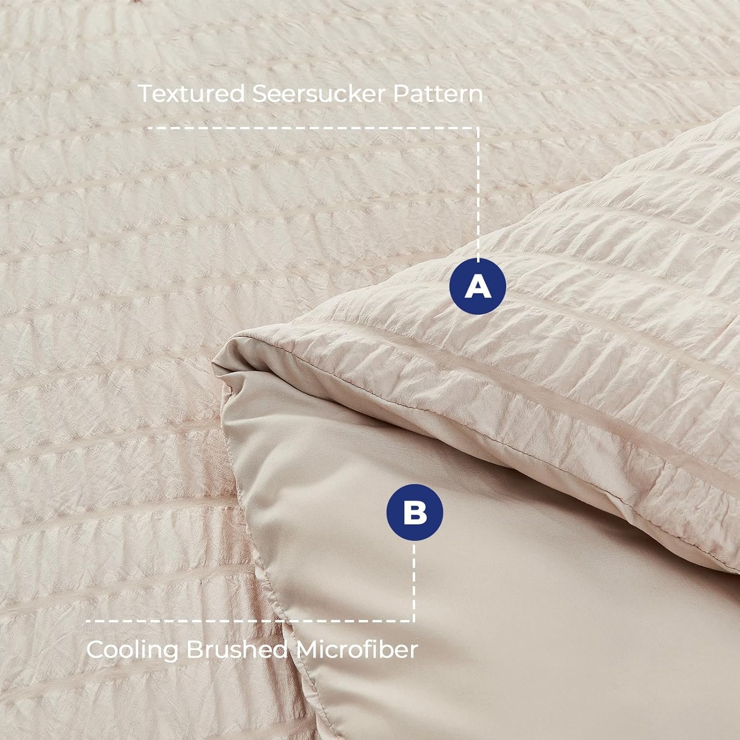 The double-brushed microfiber creates pleasant tactile experience despite being synthetic. The seersucker texture adds visual and physical interest beyond flat solid comforters.