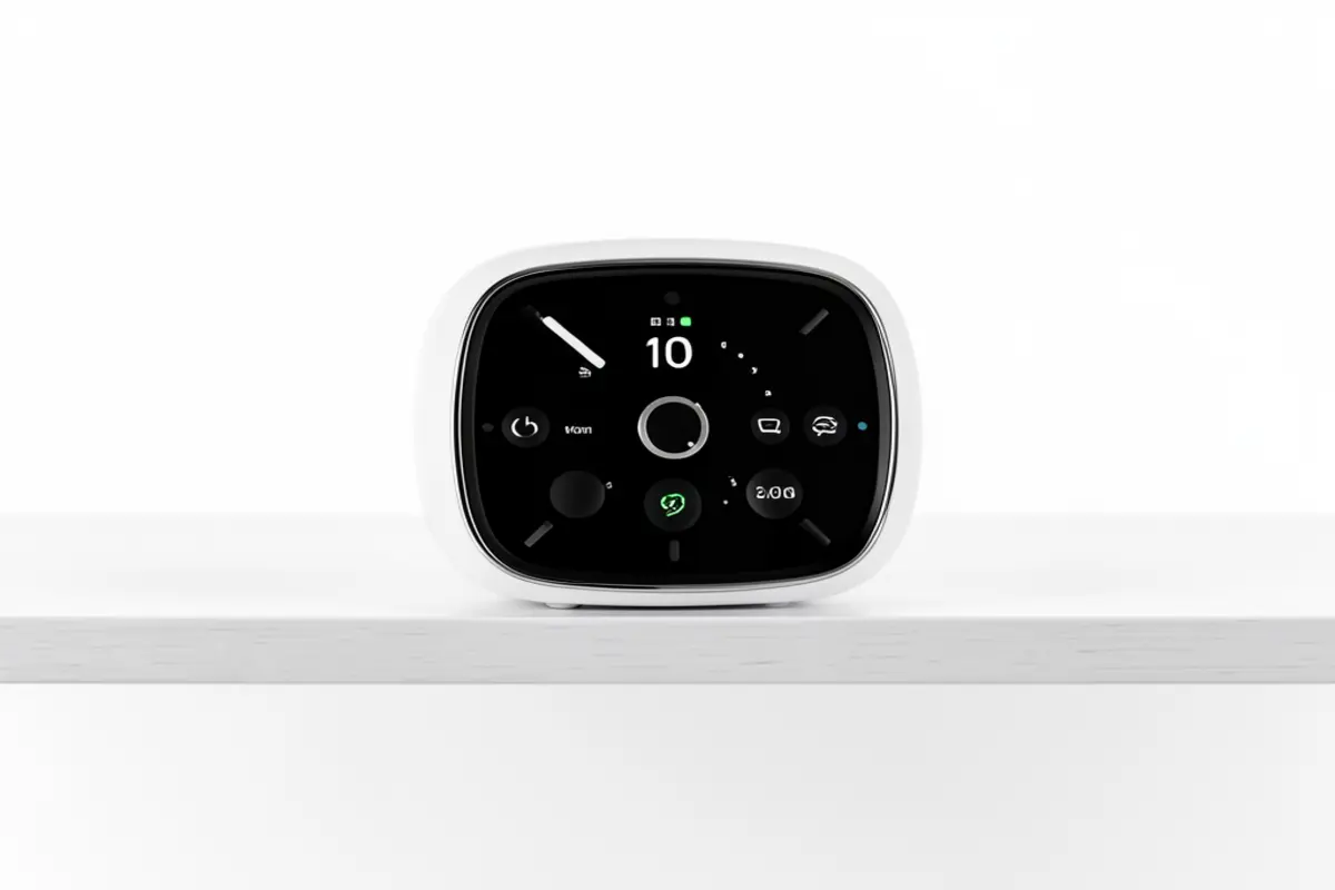 The wedge-shaped design angles the display perfectly for bedside viewing, with a fabric-wrapped back that adds a touch of warmth to what could otherwise feel like just another tech gadget. At just 5.4″ x 3.4″ x 2.9″ and weighing about 14.5 ounces, it’s substantially smaller than a standard tablet but offers enough screen real estate to be useful from across the room.